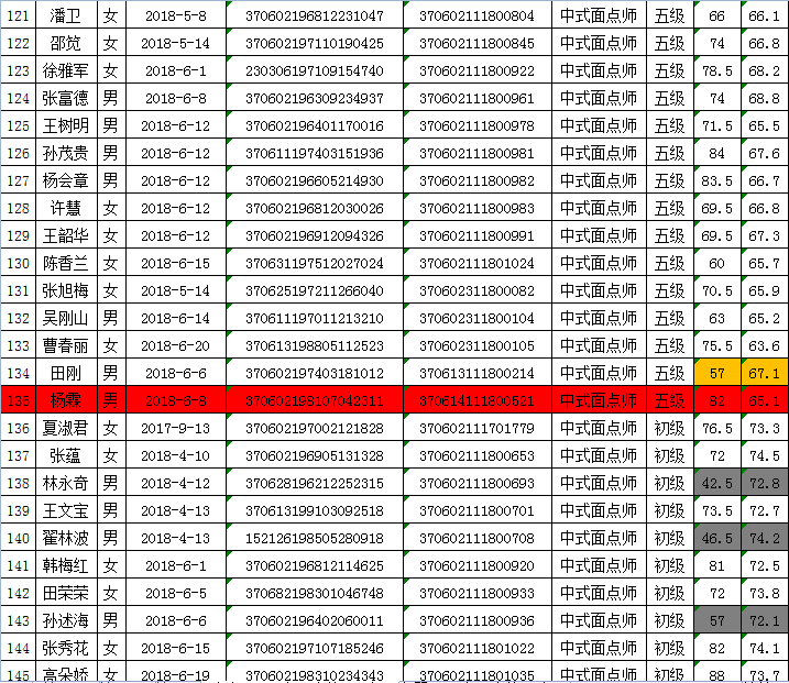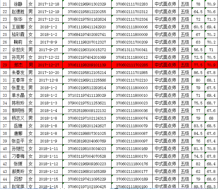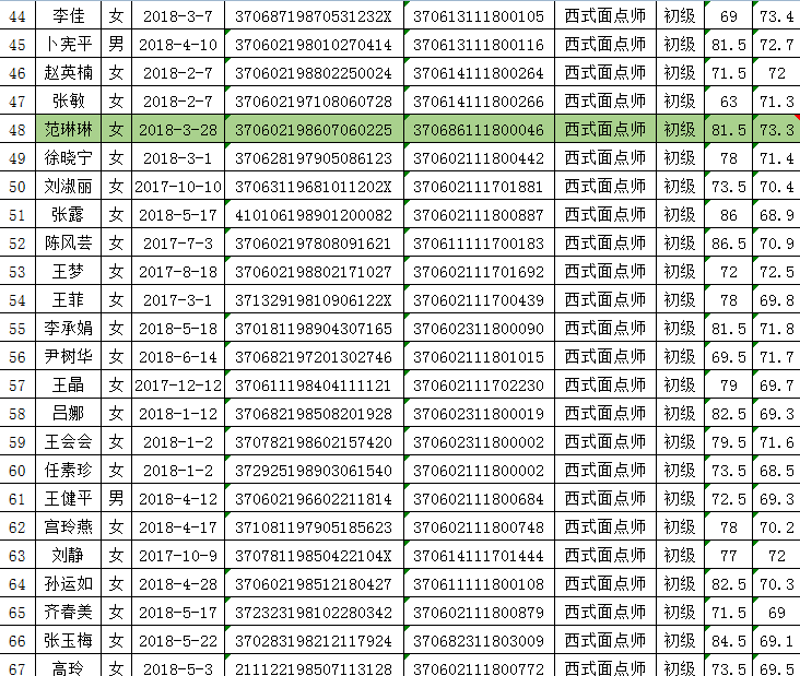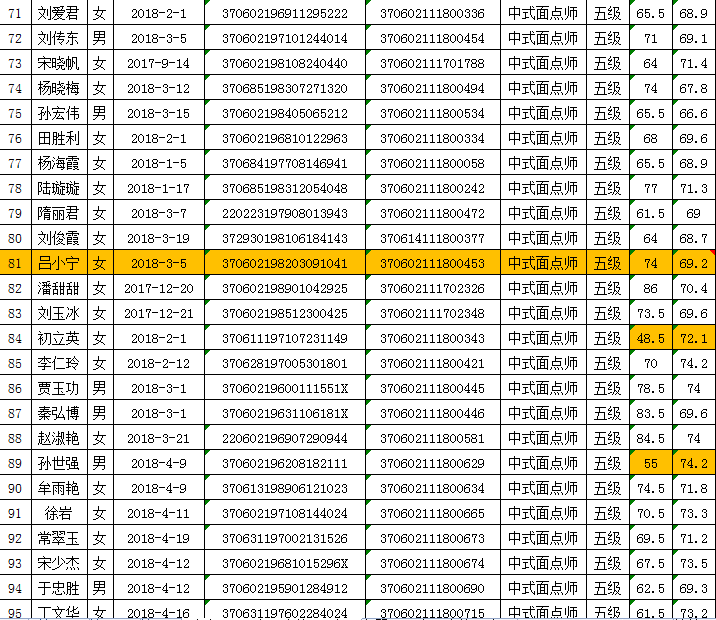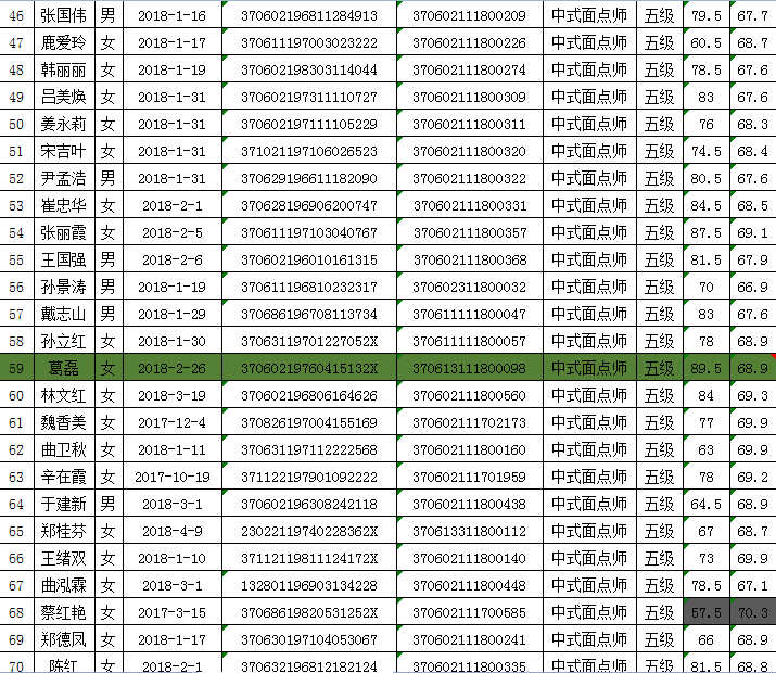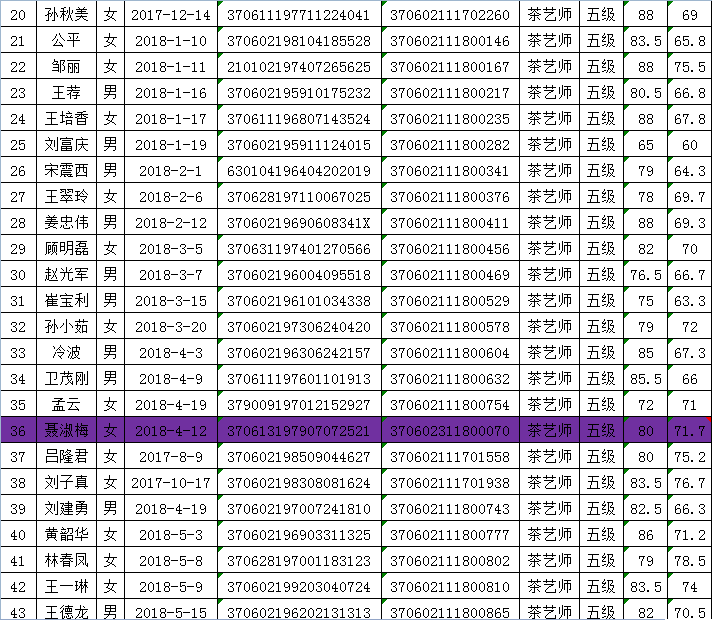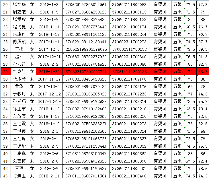 2019年度芝罘区培训补贴人员名单公示(芝罘区创业培训中心)